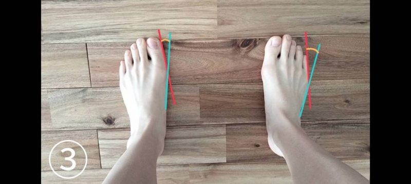 足を真上から見て、親指と小指の向きを確認します。