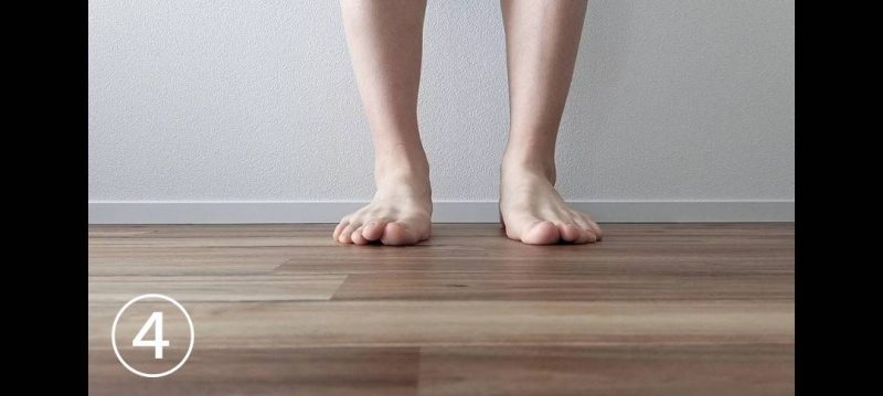 チェック: アキレス腱が「く」の字に曲がっていたり、内側や外側に倒れていませんか?